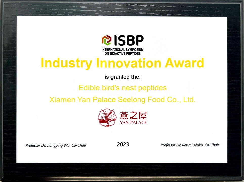 圖:燕之屋榮獲燕窩肽——行業(yè)創(chuàng)新獎(Industry Innovation Award)