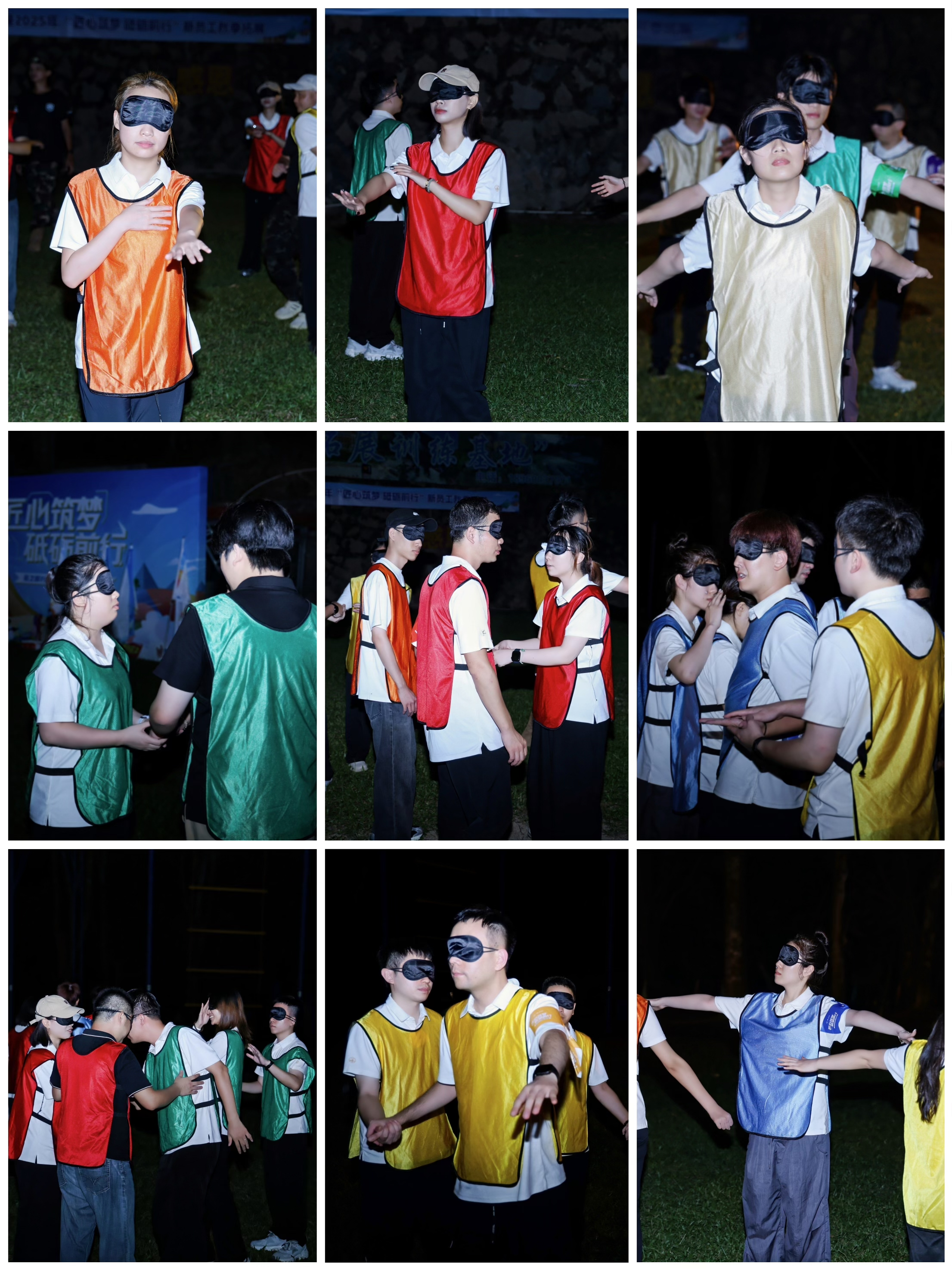 隨著夜幕降臨,“找回團(tuán)隊(duì)”項(xiàng)目將整場拓展推向新的高潮。隊(duì)員們被蒙住雙眼,在黑暗中尋找隊(duì)友,每當(dāng)遇到人的時(shí)候只能通過除語言外的其他方式及彼此默契來確認(rèn)是否是團(tuán)隊(duì)同伴。游戲過程中,已經(jīng)找回的隊(duì)友會被教官重新拆散,團(tuán)隊(duì)不僅需要再次找回成員,還需要緊緊守護(hù)隊(duì)友,堅(jiān)定彼此的選擇。那一刻,嘈雜的干擾聲遠(yuǎn)去,只留下對伙伴的信任指引方向。當(dāng)雙手終于相握,這份在困境中建立的羈絆,讓團(tuán)隊(duì)的凝聚力愈發(fā)堅(jiān)實(shí)。隨后的復(fù)盤會上,隊(duì)員們圍坐分享收獲、梳理經(jīng)驗(yàn),再一次體會到團(tuán)隊(duì)信任與凝聚的力量。